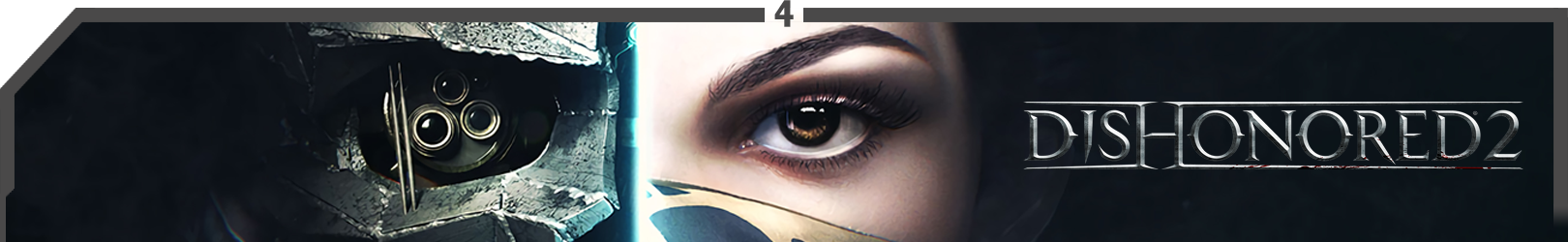Al vanaf de aankondiging hield ik Dishonored 2 in de gaten. Sneaky doen ligt me wel, en de Victoriaanse steampunk-stijl is er eentje die ik erg tof vind. Het feit dat de makers je de kans geven om een geheel eigen invulling te geven aan de manier waarop je de game speelt geeft de game nog meer diepgang dan zijn voorganger, en ook verhaaltechnisch heb ik me er weer enorm mee vermaakt. In deze tijd waarin online multiplayer belangrijker is dan ooit, kan ik het erg waarderen dat ontwikkelaars en uitgevers toch nog durven te investeren in goede singleplayer-avonturen.